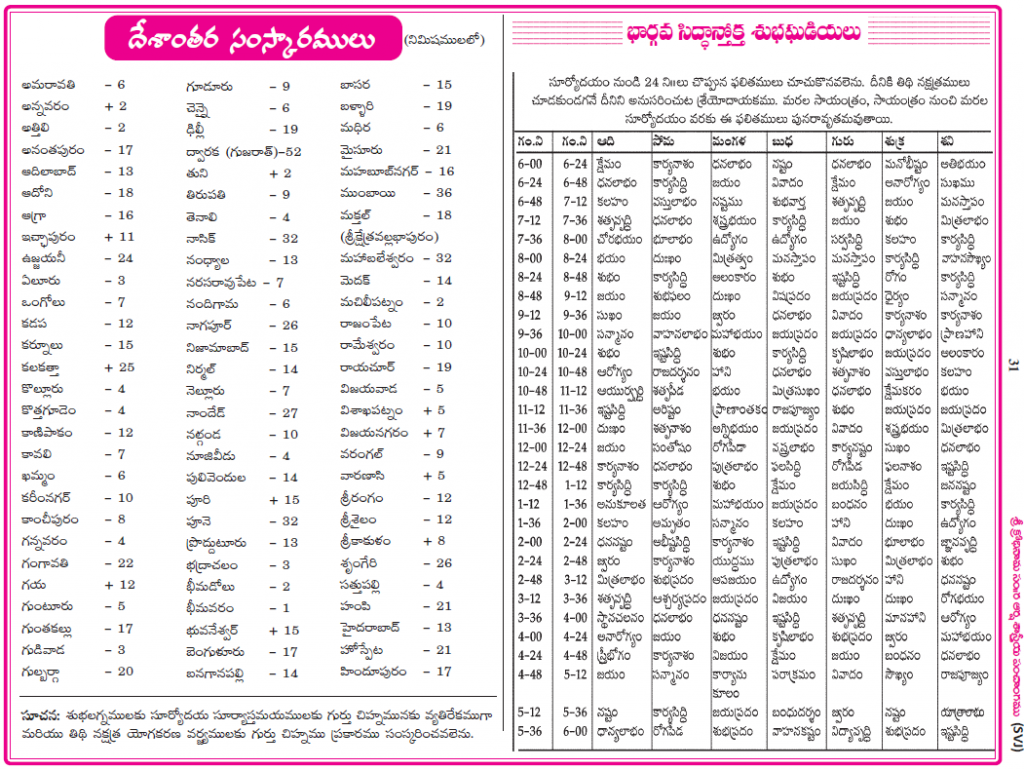 భార్గవ సిద్ధాన్తోక్త శుభఘడియలు