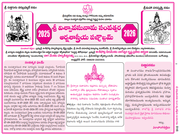 శ్రీ విశ్వావసు సంవత్సర సిద్ధాన్త పంచాంగము 2025-26