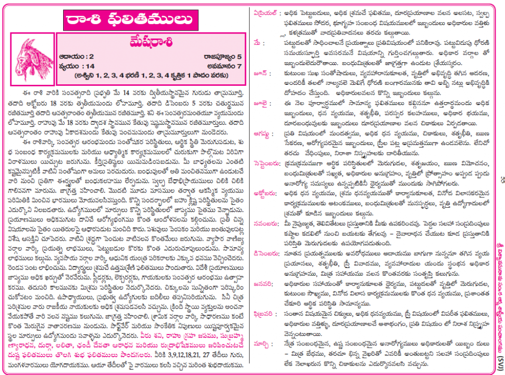 ఈ సంవత్సర ప్రారంభంలో సోదర మైత్రి అధిక ధన యోగములు కలుగును. వృత్తి. ఉద్యోగము , వ్యాపారములలో ఆచ్చి తూచి అడుగు వేయాలి. ఆరోగ్యము బాగుపడుతుంది.